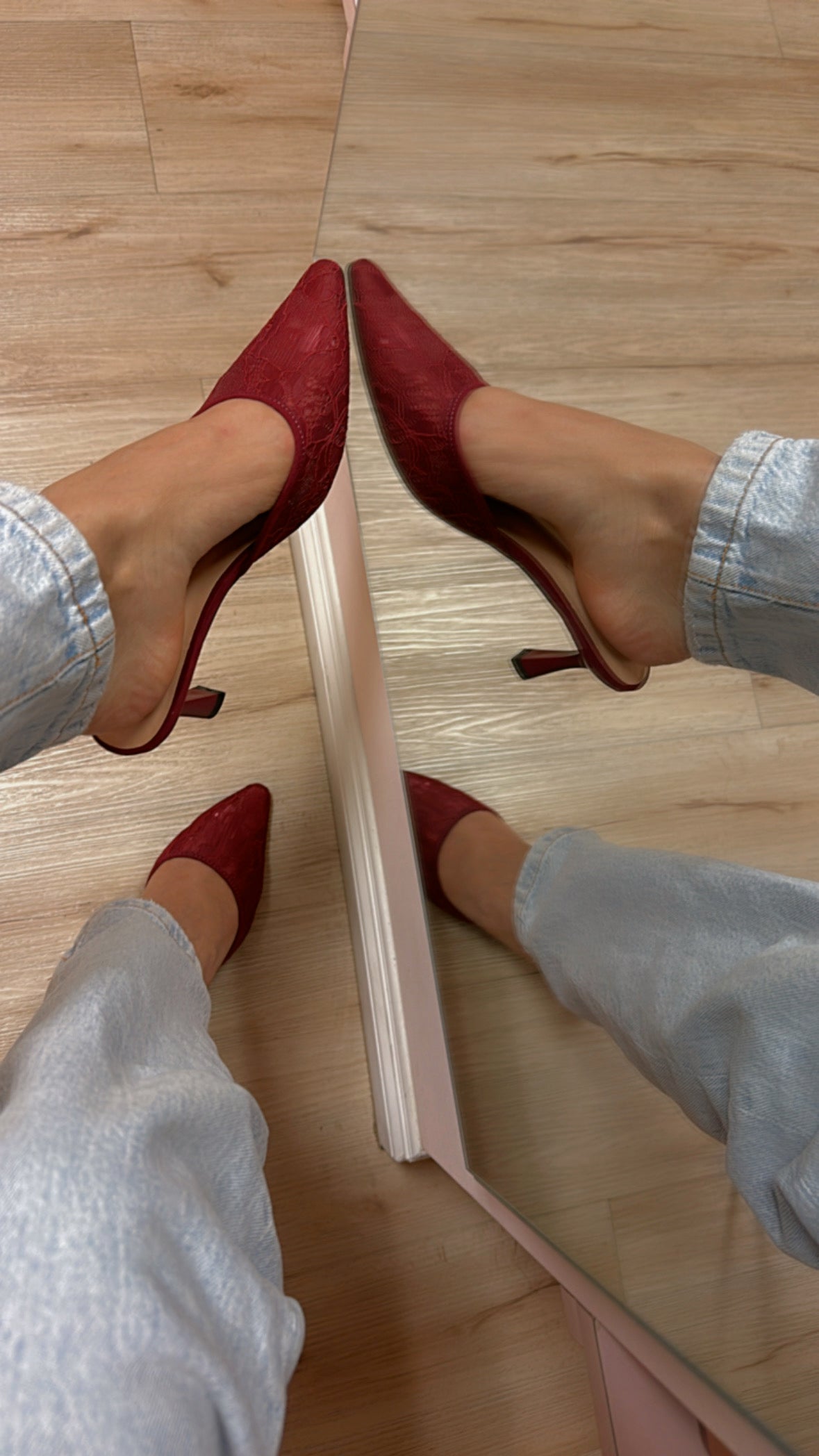AMOUR LACE POINTED TOE MID HEELS